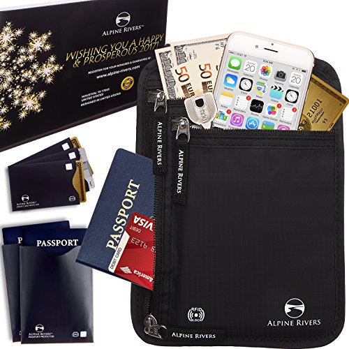 Alpine Rivers offer Neck Wallet Passport Holder & Travel Pouch RFID Blocking + 5 Extra Bonus Sleeves (Premium Black DLX). This awesome product currently limited units, you can buy it now for £24.95 £11.97, You save £12.98