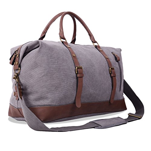 Oflamn offer Oflamn Large Leather Trim Canvas Duffle Bag Holdall Weekender Travel Bag Overnight Carry On Bag (Grey). This awesome product currently limited units, you can buy it now for £59.99 £39.99, You save £20