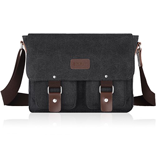 Best Seller! SMRITI 14-Inch Canvas Messenger Bag Laptop Satchel for School - Black Review